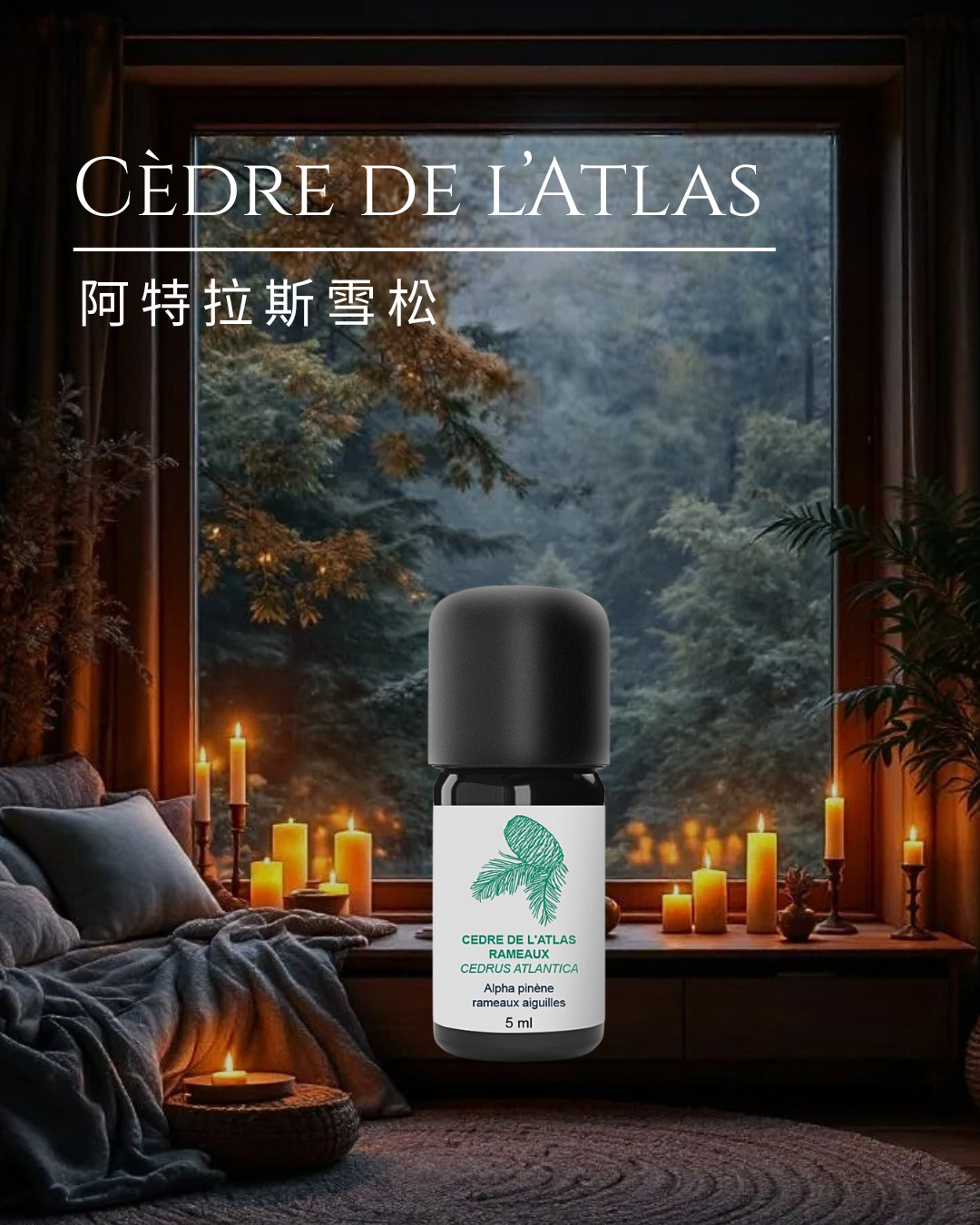 100% 有機並以手工蒸餾方式製成,取自摩洛哥阿特拉斯山脈的壯麗雪松的嫩枝。